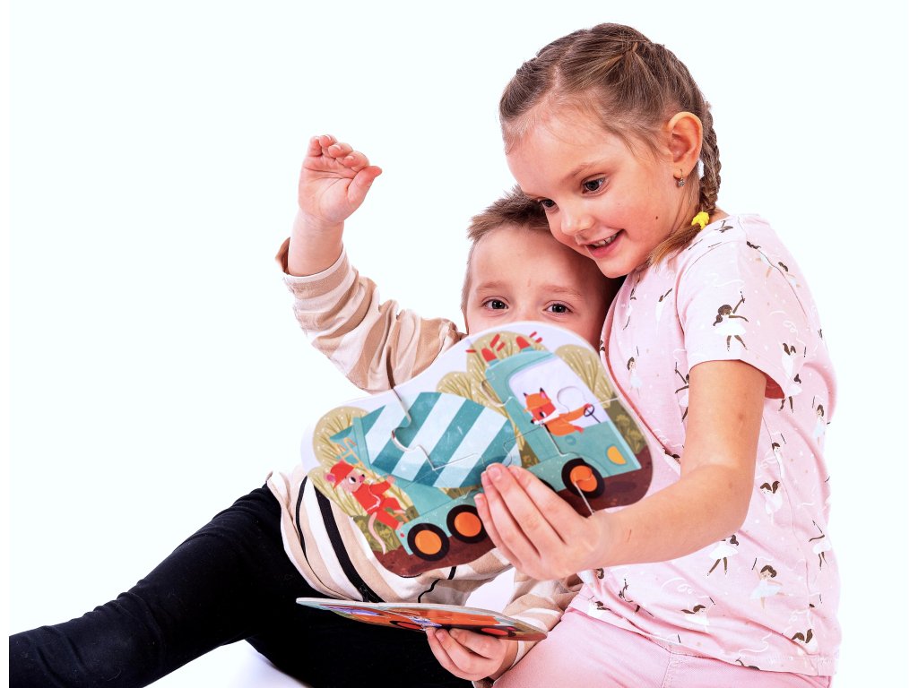 Vezměte papír a pastelky – nakreslete stroje podle puzzle, vymyslete vlastní stavbu a další auta či bagry. Zkuste společně vyhledat informace o strojích a popsat, k čemu slouží.