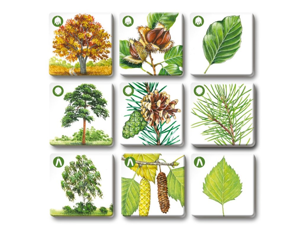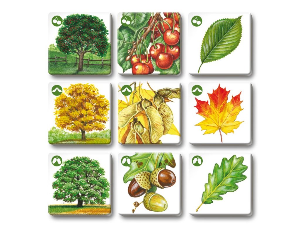 Pexetrio STROMY je výuková a zábavná hra, která vás naučí pojmenovat různé druhy stromů, poznávat jejich plody a listy. Obsahuje herní varianty pro nejmenší děti od 2-3 let, dále pro děti předškolního věku, školní děti, teenagery i dospělé hráče.